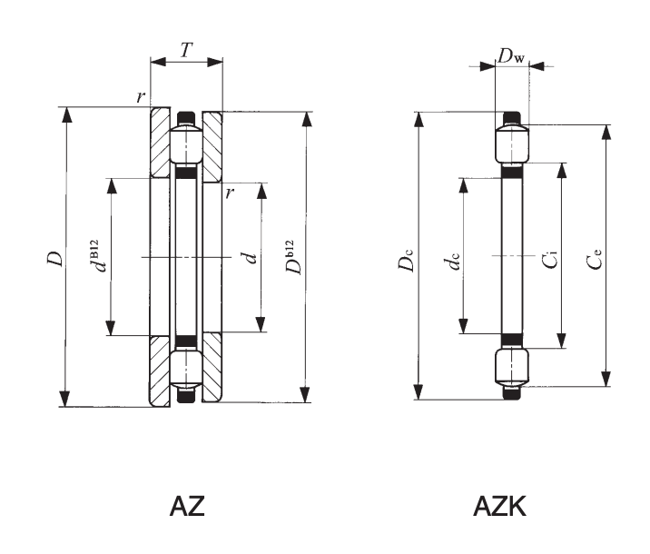 IKO Thrust Bearings are engineered with precisely made cages and rollers, resulting in products with high rigidity and exceptional load capacities that can be utilized effectively even in small spaces. The AZK series consists of the caged cylindrical rollers alone, while the complete AZ bearings combine the AZK cage and rollers with an inner ring (WS) and an outer ring (GS).